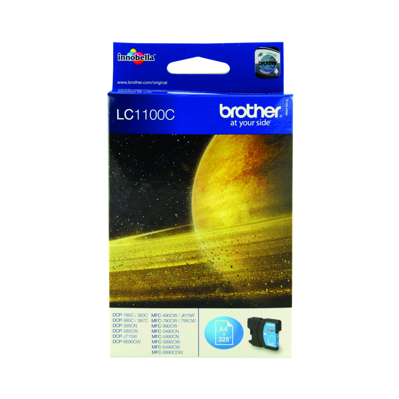 With a reputation for high quality, reliable components, you can trust in Brother LC1100C Cyan ink cartridges for top quality, high resolution results. Brother printer machines work with separate ink cartridges meaning you only have to replace the empty cartridge, producing cost savings. Providing high quality results with rich black text and vibrant colour prints that won't smudge, this inkjet cartridge produces up to 325 A4 pages at 5% coverage.