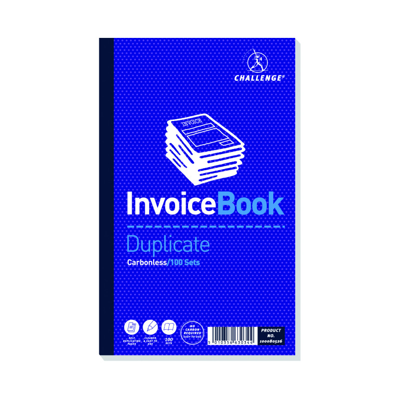 This Challenge Invoice Book without VAT column provides carbonless duplicate copies for your records. Each book is tape bound and contains 100 numbered sets of duplicates. This pack contains 5 duplicate invoice books measuring 210 x 130mm.