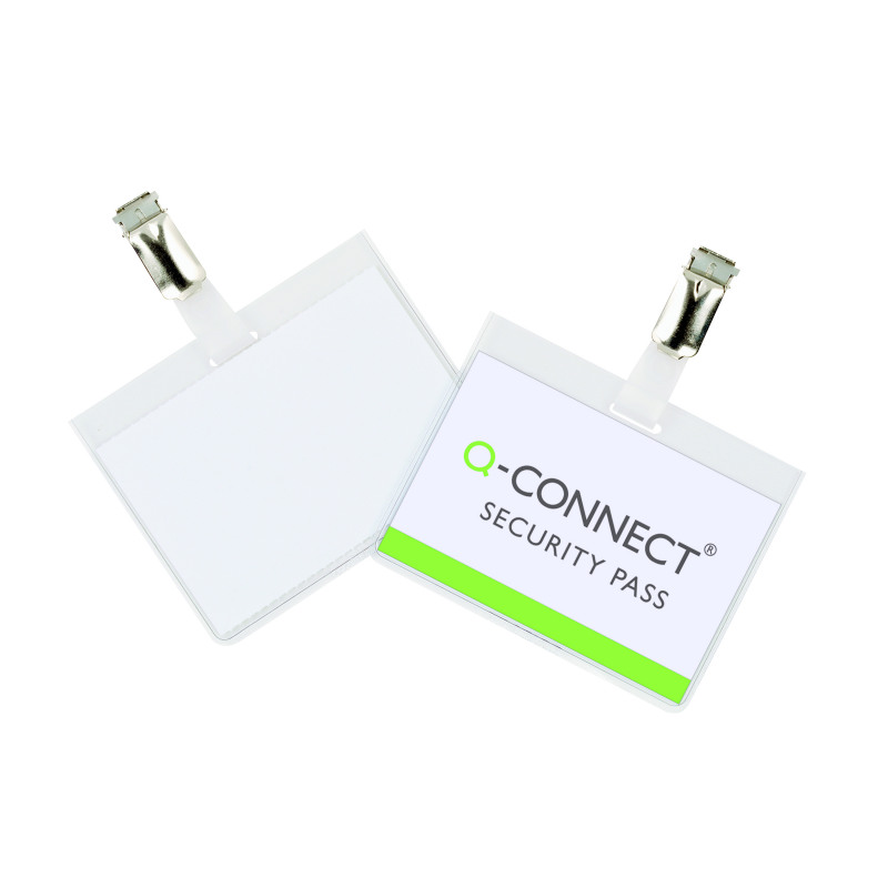 Durable transparent PVC visitor badge with plastic clip. The clip securely locks the badge in place keeping it secure. The clip can easily attach to clothing without causing any damage. Holds 60x90mm cards.