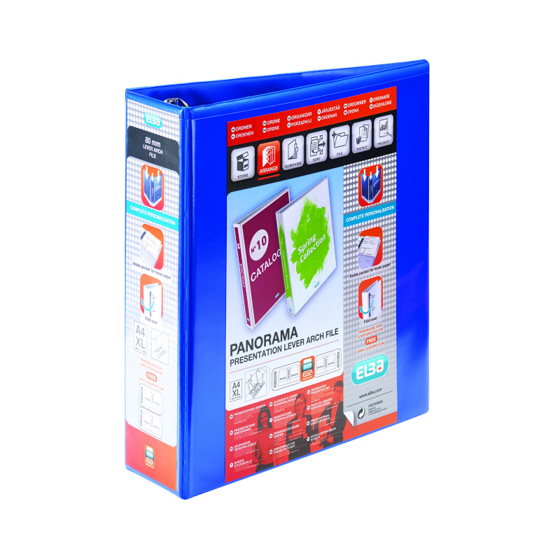 Elba Panorama 65mm Presentation Lever Arch File A4 Blue (5 Pack) 400008438