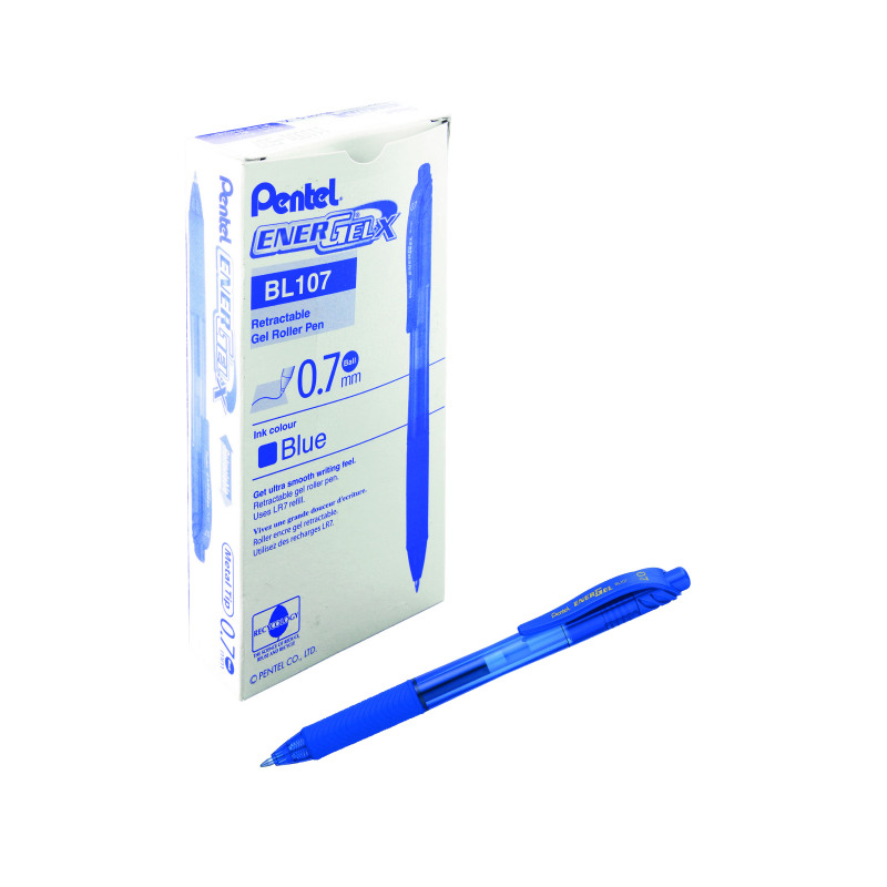 Pentel EnerGel X Retractable Gel Pen Medium Blue (Pack of 12) BL107/14-C