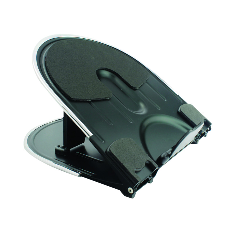 This Q-Connect laptop stand is made of lightweight, durable aluminium and can be opened flat for additional desktop space, or folded flat for convenient storage and transport. The laptop stand also features an easel style base with 5 angle adjustments of 21, 24, 31, 36 and 39 degrees for optimum viewing comfort. This black laptop stand has a platform size of 500 x 220mm and is suitable for laptops up to 14 inches.