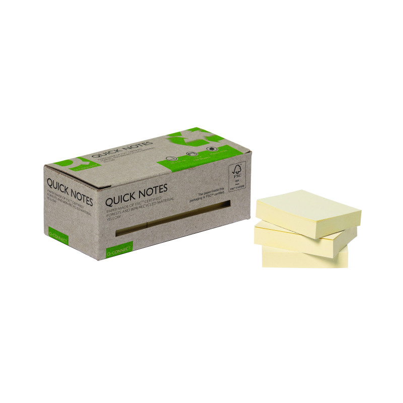 Q-Connect Recycled Notes 38x51mm Yellow (Pack of 12) KF17323