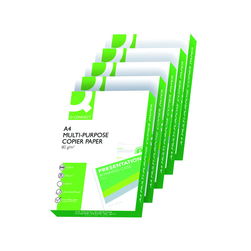 Buy Q-Connect White 80gsm A4 Copier Paper and you save on cost but not on quality. Bright white, highly opaque with excellent ink retention, this paper is ideal for everyday printing and copying. Its ultra-smooth 80gsm finish shows up excellent contrast against ink or toner with almost no bleed through. Q-Connect provides the perfect combination of value and excellence for crisp, clean printouts on paper that does not cost the Earth.